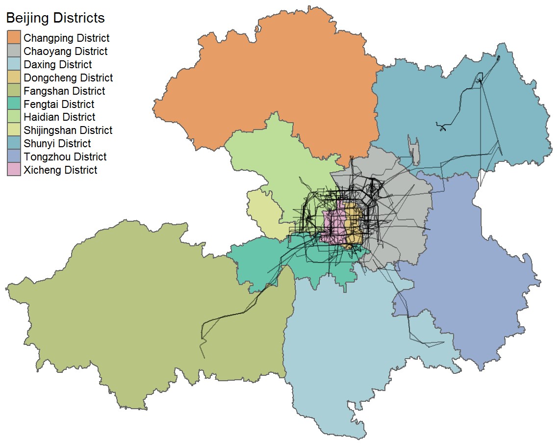 An analysis of GPS traces of taxis in Beijing, using R.